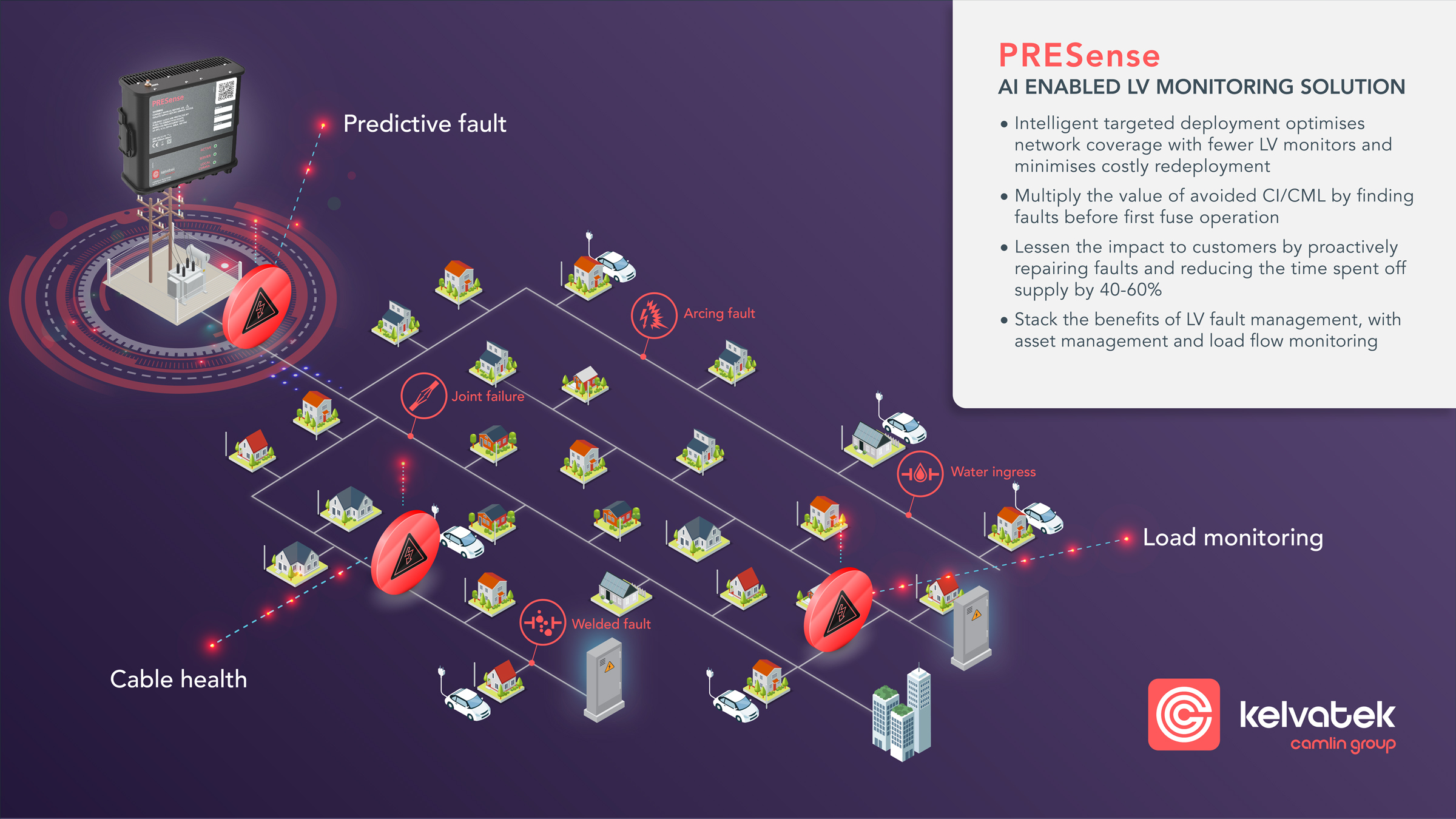 Detect developing faults earlier, shorten time to resolution, reduce safety risks, and protect continuity of supply as renewables and new loads increase volatility.